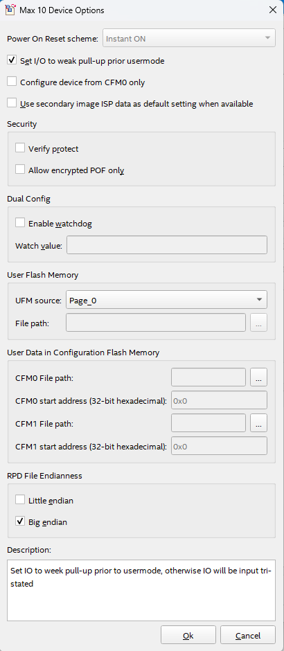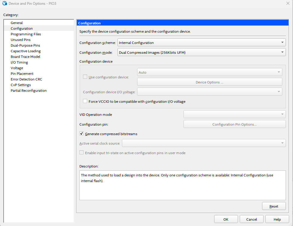 I am using the MAX10 Dual Configuration. The device settings in the Quartus are shown in the image below.