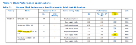 MAX10 EPE M9K Fmax limit?