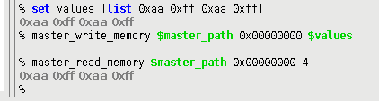 For example, I am trying to simply read the device ID, so I copy and paste the following at the tcl> prompt: