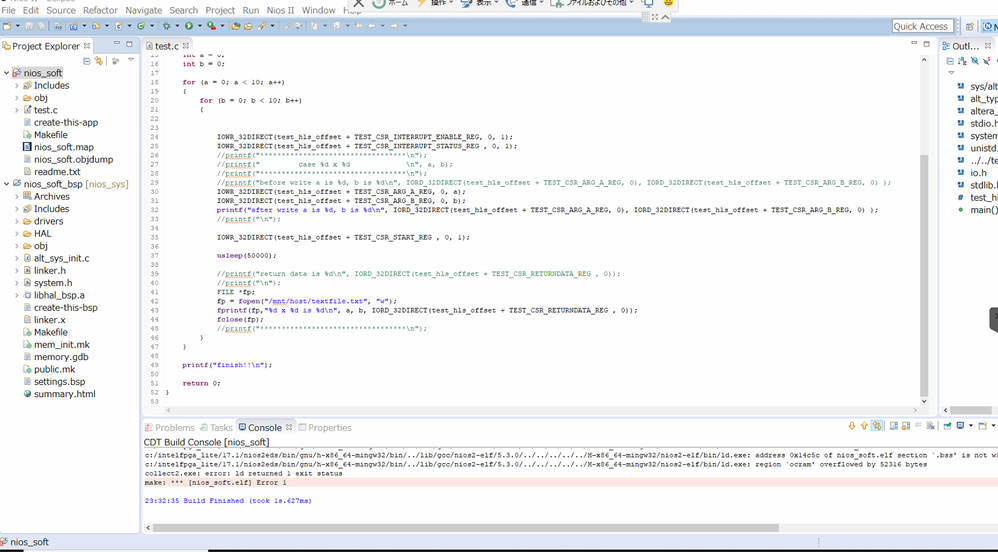 I was able to implement a multiplication circuit using high-level synthesis and display the calculation results on the screen using nios.