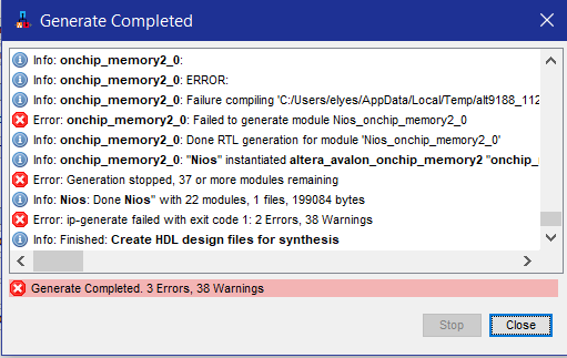 Make sure you're doing the steps correctly as stated in this video https://www.youtube.com/watch?v=joFaxLY-rUE. Based on Generate Completed window line 3, can you check the reason for causing that Failure compiling 'C:/Users/elyes/AppData...'. Alternatively, you can specify the HEX file with QIP.