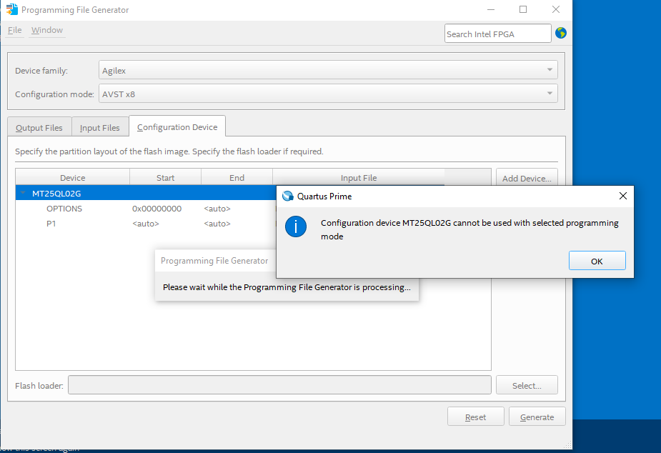 I am using Avalon-st x8 configuration method, so cannot use "convert Programming Files" options. Configuration userguide suggest to use "Programming file Generation" options - YuanLi_S_Intel