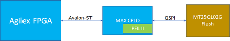 PFL II IP will configure the Agilex using Avalon-ST configuration schemes. PFL II IP connects with QSPI flash.