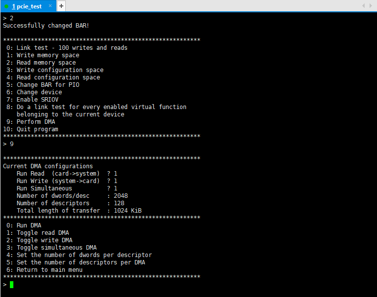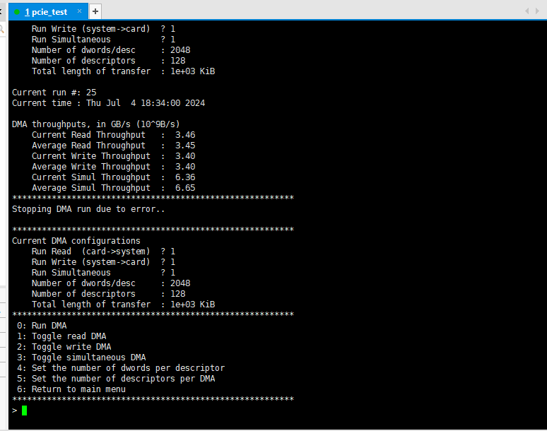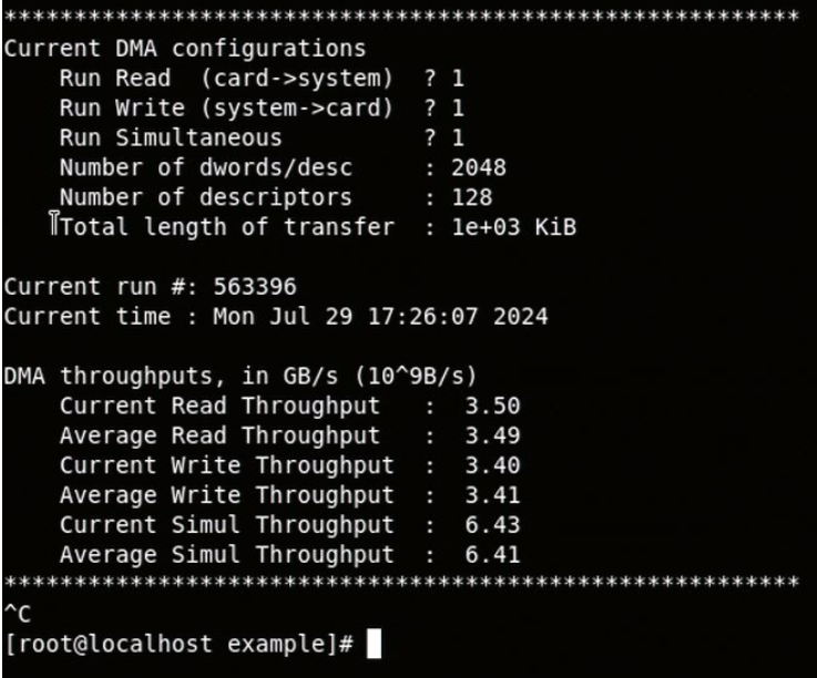 Even if I generate the example design and follow the steps in the UG, I still encounter the same issue. ( enter 0 for run DMA , enter 0 for infinite loop, DMA operation timed out after few seconds).