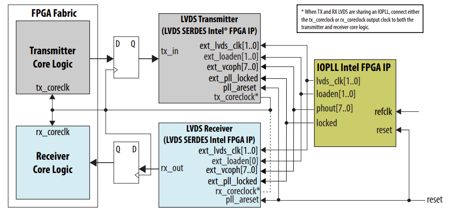 - I am using Agilex7 , and I implemented the following LVDS design recommended by altera spec to place ALTLVDS and ALTLVDS RX on the same bank - (the bank used is 2F )