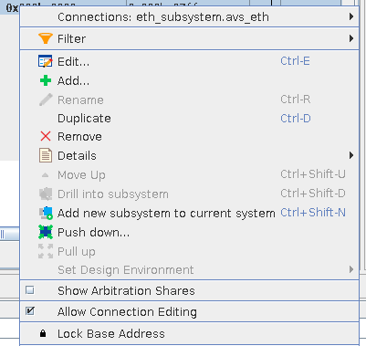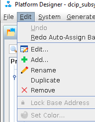 The Assign Base Addresses option will set the base address for any unlocked agent interface. You can click the little lock icon to prevent this command from potentially changing the address if you have manually set the base address yourself. The end address is automatically set based on the design of the component and the base address set. You can't edit the end address.