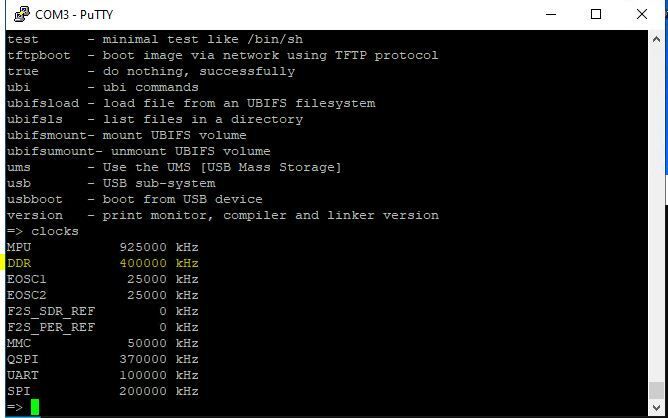 We don't have the clocks command in our version of u-boot (shipped with Quartus 18.1). We have only these commands in our version.
