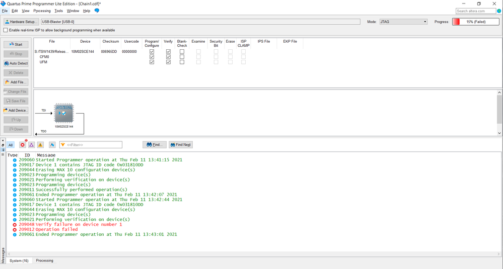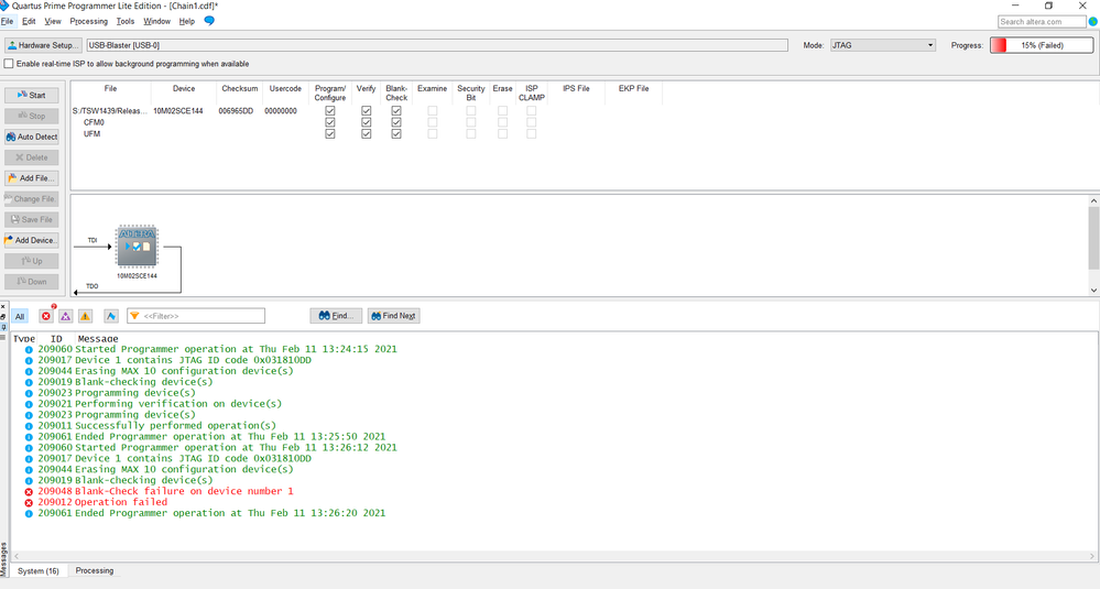 5 years agoQuartus Programmer (quartus_pgmw.exe) 15.1 build 185 Failure to Function on First Attempt