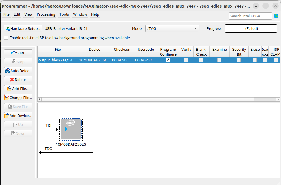 Quartus programmer start failed