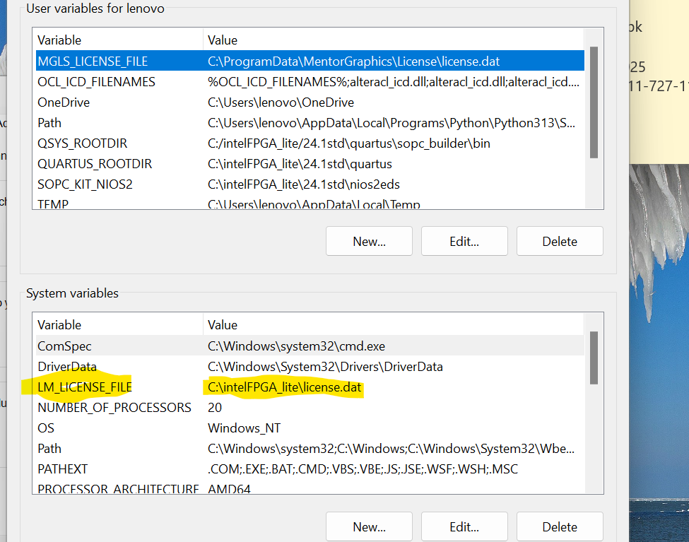 to enable my Questasim FSE (Quartus Prime 24.1) from intel self service license portal . The .dat license file send to my email was named LR-230041_License.dat , i changed its name to just "license.dat". Created system environment variable and restarted my pc to make it work.