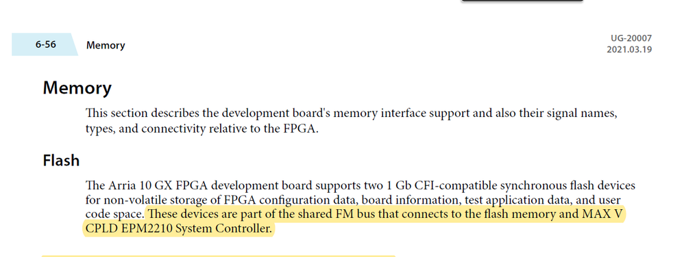 In the following section ( picture below), it says "These devices are part of the shared FM bus that connects to the flash memory and MAX V