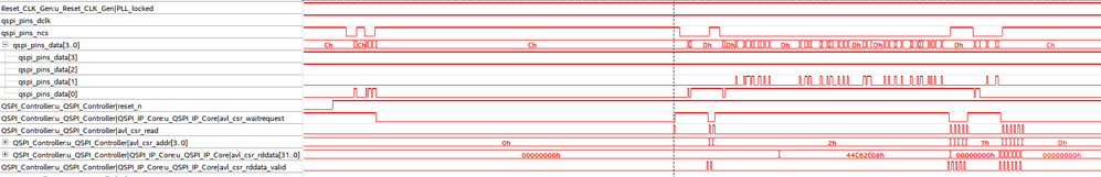 1. I think the CSR is located in FPGA, reading CSR doesn't need to access Flash, why the qspi_pins_ncs is driven low when the FPGA starts a read CSR operation? Also the qspi_pins_data[1] and qspi_pins_data[0] toggle, indicates the data output from Flash.