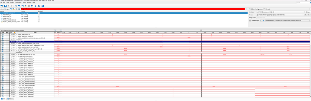 However, in SignalTap, I sometimes see unrealistic behavior, for example pin_perst_n_o continuing to toggle, possibly due to setup timing violations around the TX clock domain. Because of that, it is difficult to trust SignalTap captures for validating the reset sequence directly.