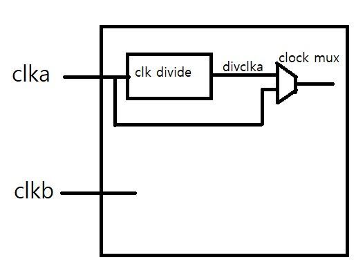 I included underlined clkc and clkd in the same group. Because clka, divclka, clkc, and clkd are all produced from the same clka, so they are thought to be the same clocktree.