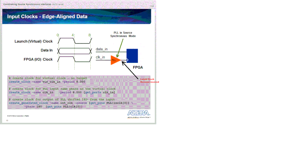 "Center Aligned" , input max delay = period / 2 -setup , input min delay = hold - period/2
