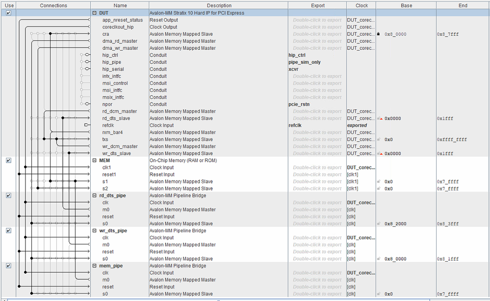 Than want to additionally register user interrupts. To do this, I use the intx_req_i input, which became available after selecting Export Interrupt conduit interface. And also tried using the rxm_irq_i[15..0] inputs. I apply a logical unit signal of a certain duration to these inputs, but I do not register an interrupt.
