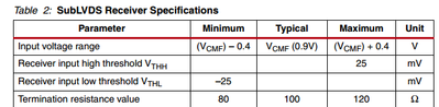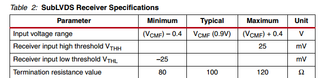 I have one image sensor with 20 lane Sub-LVDS output (16 lane data and 4 lane clock) with following dc characteristics