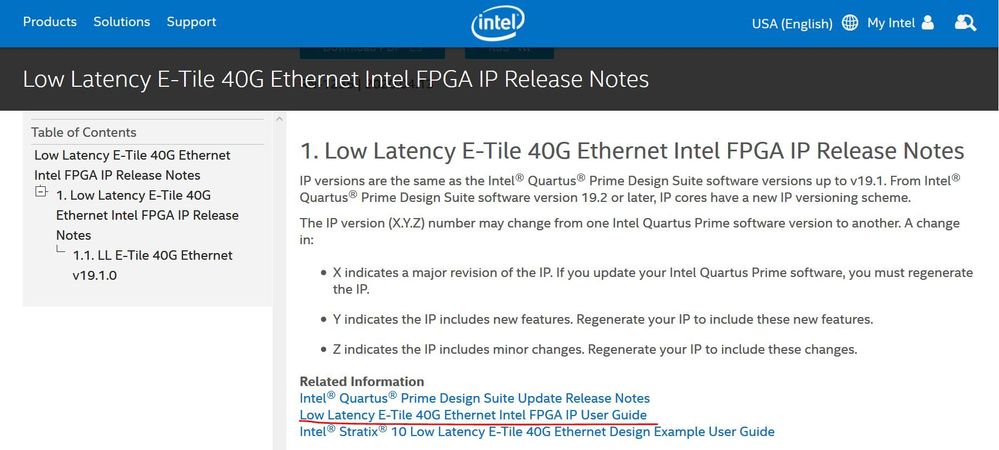 Sorry as I am not very clear with your specific inquiries. As I tested the following link, it seems to lead me to "Low Latency E-Tile 40G Ethernet Intel FPGA IP Release Notes". Would you mind to further elaborate on your specific issue? Thank you.