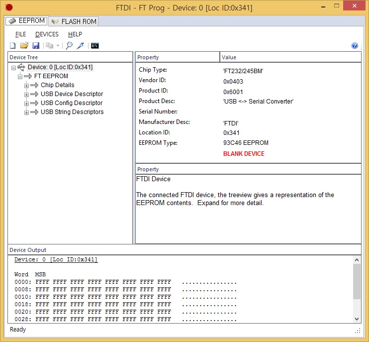 I have accidentally erased the EEPROM on my CycloneIV development kit and now the computer sees the USB Blaster as USB Serial interface. I tried to reprogram by using FTDI - FT prog and usb_blaster_BLASTR01.xml file from the forum. When I tried to program, FTDI program gives two errors. First one: The current drawn from the USB port must be in the range 0 to 500mAmps. Second one: The maximum number of characters for the Manufacturer, Product Description and Serial Number is 46. It seems this XML code worked for DE1 users and I don't understand why it does not work with my board. Here is the XML code that I used: <?xml version="1.0" encoding="UTF-8" ?> - (http://www.alteraforum.com/forum/) <FT_EEPROM> - (http://www.alteraforum.com/forum/) <Chip_Details> <Type>FT232/245BM</Type> </Chip_Details> - (http://www.alteraforum.com/forum/) <USB_Device_Descriptor> <VID_PID>2</VID_PID> <idVendor>09FB</idVendor> <idProduct>6001</idProduct> <bcdUSB>USB 1.1</bcdUSB> </USB_Device_Descriptor> - (http://www.alteraforum.com/forum/) <USB_Config_Descriptor> - (http://www.alteraforum.com/forum/) <bmAttributes> <RemoteWakeupEnabled>false</RemoteWakeupEnabled> <SelfPowered>true</SelfPowered> <BusPowered>false</BusPowered> </bmAttributes> <IOpullDown>true</IOpullDown> <MaxPower>150</MaxPower> </USB_Config_Descriptor> - (http://www.alteraforum.com/forum/) <USB_String_Descriptors> <Manufacturer>Altera</Manufacturer> <Product_Description>USB-Blaster</Product_Description> <SerialNumber_Enabled>true</SerialNumber_Enabled> <SerialNumber>BLASTR01</SerialNumber> <SerialNumberPrefix>BL</SerialNumberPrefix> </USB_String_Descriptors> </FT_EEPROM> Thanks