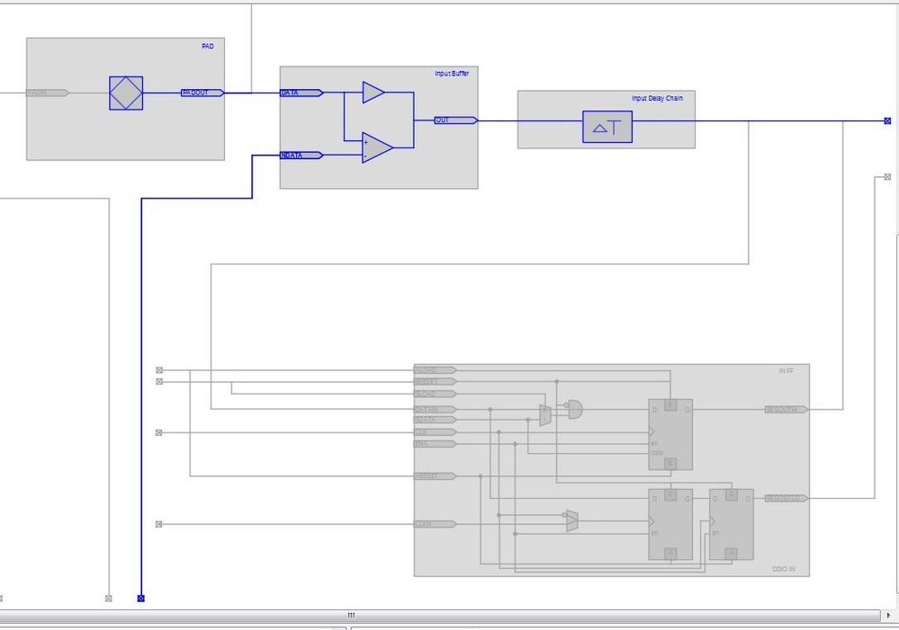 After all these setting and timing constraint, I got setup time violation shown as figure “step_violate_DA0”. What makes me confused is in the input data path, why the “DDIOIN_X150_Y16_N52” internal connection spent so much time (7.688ns) and when I click to view this path in “Resource Property Viewer”, it surprises me that looks like the fitter didn’t locate this path into DDIO_In block (right-down region of figure “DA0_Input_Path”). It happens on every device and Quartus version I’ve tried above. What makes me confused is even though there’s time violation, but in SignalTapII, the ADC data are correct.