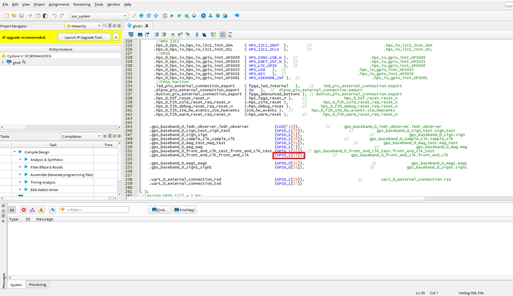 I am using ghrd.v to setting project gpio for a while. It work correct before, but someday I found I couldn't replace gpio. For example, I tried to replace a pin from gpio[2] to gpio[19], compile is fine, but it still maintain gpio[2] actually. I use quartus 21.1 lite and my board is DE0 board with cyclone V 5CSEMA4U23C6N. How do I fix the problem?