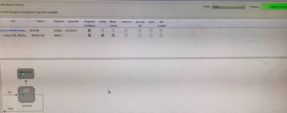 be successfully downloaded to MX25L12835FMI-10G ,but when power on the board again,the configuration is failed. The soft version is Quartus prime 18.1.1 build 646. I don't know why and hope someone can help me.