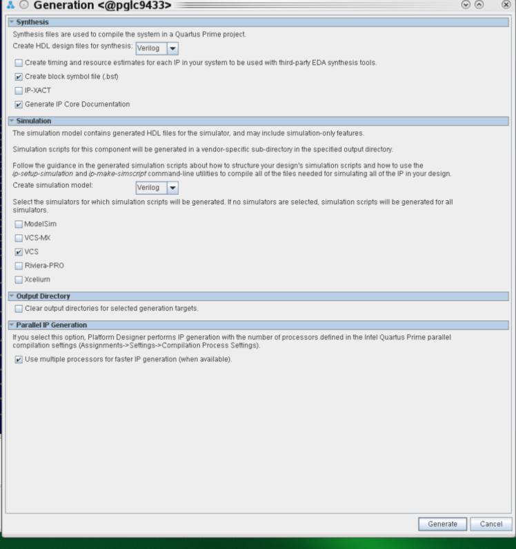 The screenshot resolution is bad to look at but the second screenshot seems to generate HDL for the specific IP. Does not look like it generate the Simulator Setup Script.