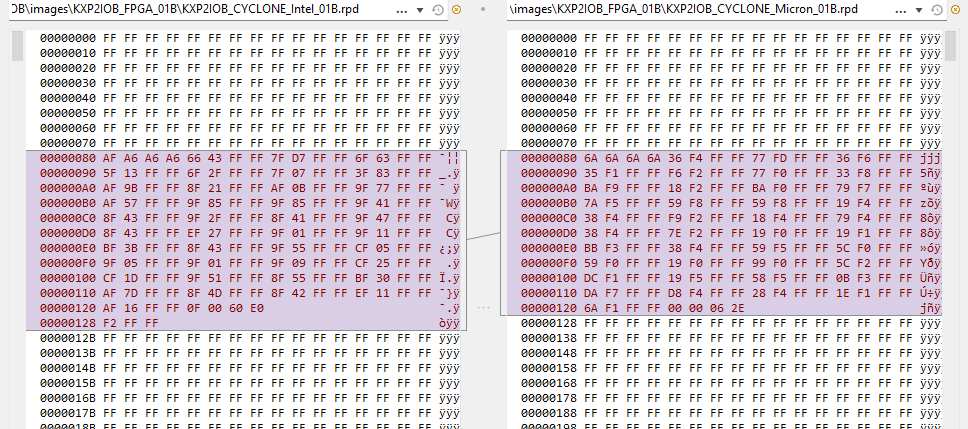 However the rpd files are slightly different, from bytes 128 to 298 (ie: 170 bytes), as just below, and noting before and after this section it looks to be only padding, ie: FFs: