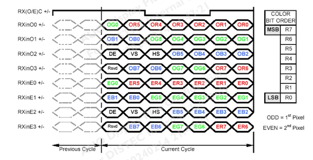 Here is a data sheet extract showing the LVDS timing and encoding for the 1080p panel, this seems to be fairly standard across LCD manufacturers: