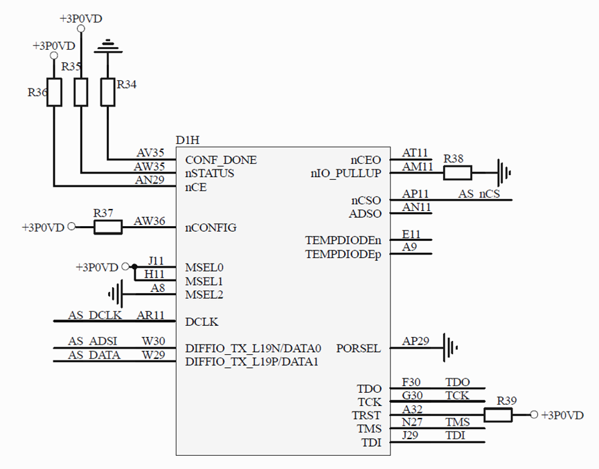 1. Because the pins connected to the signals AS_ASDI and AS_DATA on the FPGA side are different, does it also cause the way of the pull-up and pull-down resistors of CONF_DONE and nCE above to be different from the official configuration?