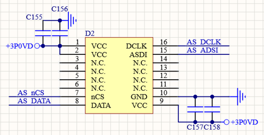 The second point is that the FPGA side pins connected to EPCS are also different, AS_ASDI and AS_DATA, which are not on the same FPGA pins as the official configuration. Since the FPGA is a BGA package, I can't get the unleaded pins out.