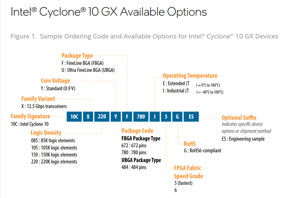 Need your expertise & advice regarding part no. 10CX085YF672E6GGA what is suffix GA meaning?