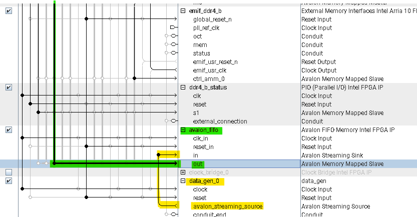 As an initial step (to test the working of the FIFO + PCIE DMA transfer example design, as our final aim is to get the data from QSFP+ to FIFO to goto the DDR4 element), we used a custom IP of data counter that counts upto 1000 (works on getting an trigger from a switch SW[0] ) to connect to Avalon FIFO IP. Then this design is integrated to the PCIe DMA transfer example design using Platform Builder. The idea is to stream created at the counter though FIFO to the DDR4 memory element. Then DMA read though PCIE to a host computer. But when we try to do DMA read from the host computer, we could not see the counter outputs (which we are suppose to get?).