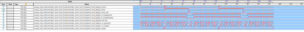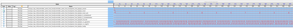The toggling reset_ack after asserting reset is not expected. Also the rx_ready not stable.