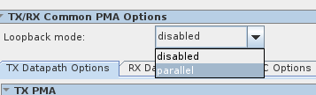 To achieve this setup, you can enable the Parallel Loopback path (Path B). This configuration allows the parallel data fed into the TX interface to be directly routed to the RX interface, bypassing the serializer, deserializer, and CDR blocks.