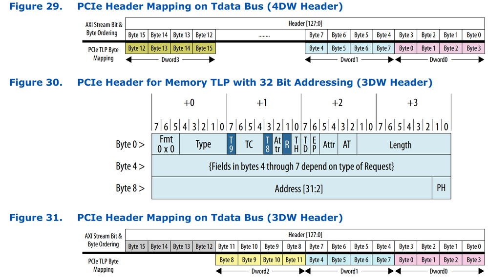 Based on my understanding, The mapping of the fields in _tuser_hdr is NOT the same as the mapping in tdata. tdata contains the actual TLP data (including header and payload),