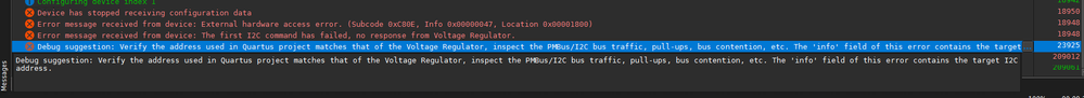 I have a compiled design that I would like to test that implements Ethernet on F-Tile. When I try to program the FPGA with my bitstream, it stops and prompts me with the following errors: