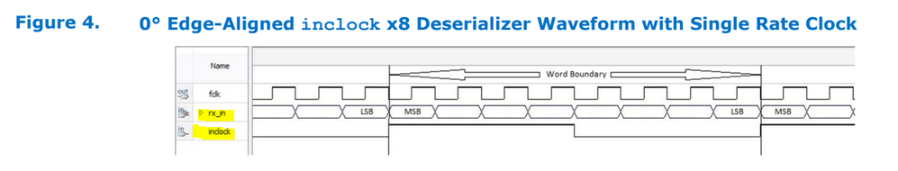 However, the waveform in modelsim wasn't exactly the same as what I expected. I have a "0° Edge Aligned tx_outclock x6 Serializer Waveform with Division Factor of 6 " in modelsim, which is incidental as user guide described. (page 20, figure 7, https://www.intel.com/content/dam/www/programmable/us/en/pdfs/literature/ug/ug_altera_lvds.pdf)