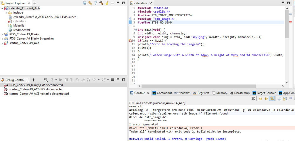 I am struggling in using the libraries of C-language in the ARM development studio IDE version 2021.1 (Intel edition). Let me demonstrate the working environment as follow: