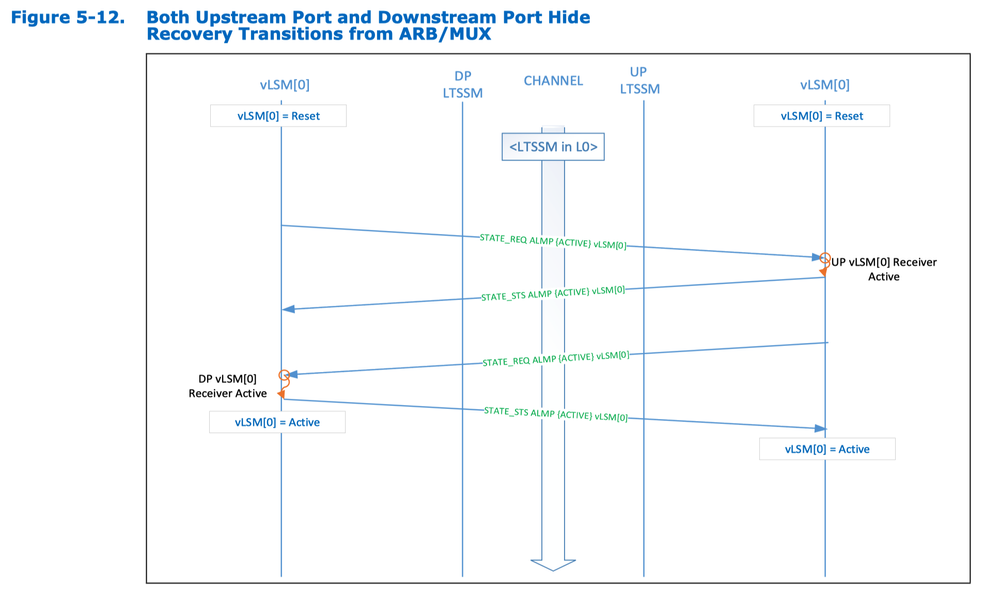 In this above picture(Fig. 5-12) from the CXL specification, CPU(Left side) and Endpoint device(Right side) exchange the ALMPs(ARB/MUX link management packets) and finishes the state transition to active state.