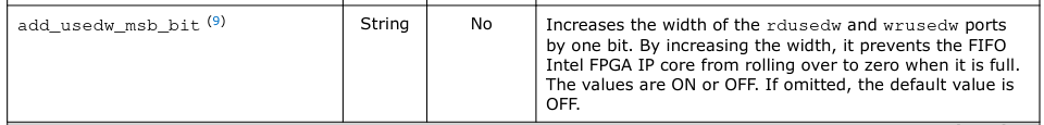 Looking through it, I see the add_usedw_msb_bit option, which might be what you're looking for to see the correct value on rdusedw and wrusedw.