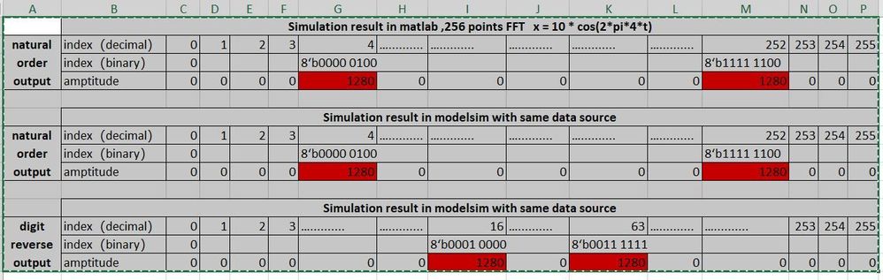 I am simulating the intel FFT IP core, and seems the index of non-natural order FFT output is not fully match the index digi reverse calculation.