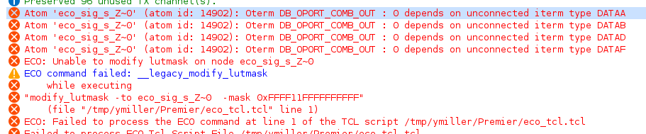 Error (20878): ECO: Failed to process the ECO command at line 1 of the TCL script /tmp/ymiller/Premier/eco_tcl.tcl