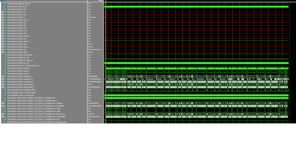 I am running EMIP example simulation, using platform designer generate an example with presets ( Arria 10 GX FPGA Development Kit with DDR4 HILO) , it runs till the transcript console claim the simulation passed. it is pretty exciting result.