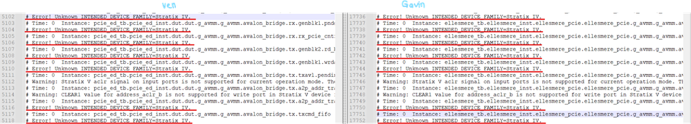 Based on my findings, there are 7 instances that returned the comment of "# Error! Unknown INTENDED_DEVICE_FAMILY=Stratix IV.". This is reported because the INTENDED_DEVICE_FAMILY parameter was defined as Stratix IV, but it is not found in the IS_VALID_FAMILY function's list of device families.