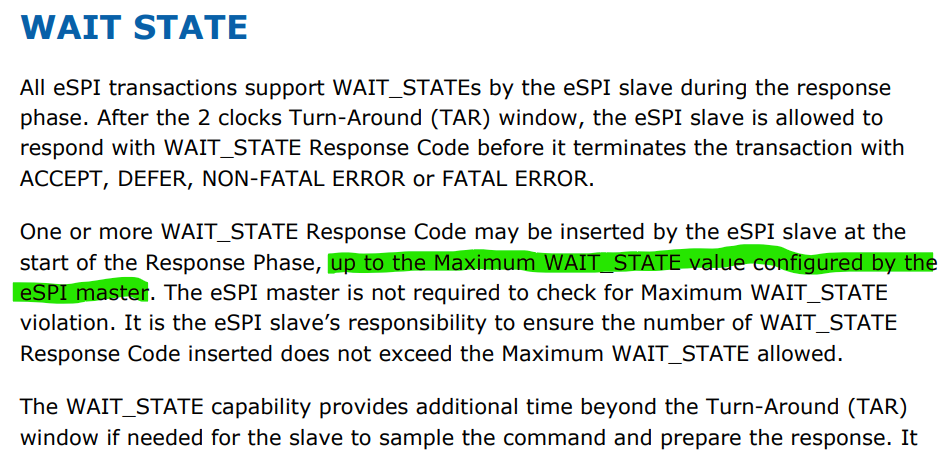 The eSPI Agent is responding always 16 bytes of WAIT_STATE before ACCEPT or DEFER regardless of the command responding to.