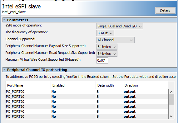 We are using Intel eSPI Agent Core in Intel FPGA MAX 10.