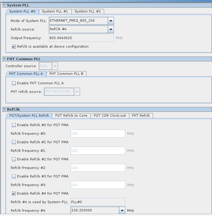 F-Tile Reference and System PLL Clock Intel® FPGA IP settings: