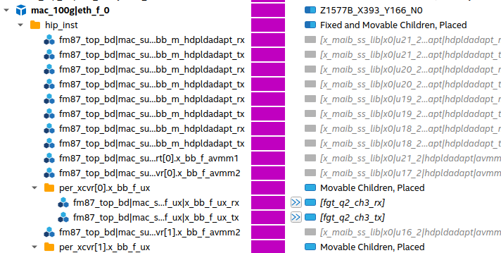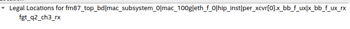 The specified block fm87_top_bd|mac_subsystem_0|mac_100g|eth_f_0|hip_inst|per_xcvr[0].x_bb_f_ux|x_bb_f_ux_rx cannot be placed at the location fgt_q2_ch0_rx as the block requires stream(s) [0] in an Ethernet 100g block but the location only supports stream(s) [1, 2, 3].