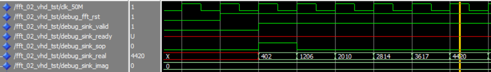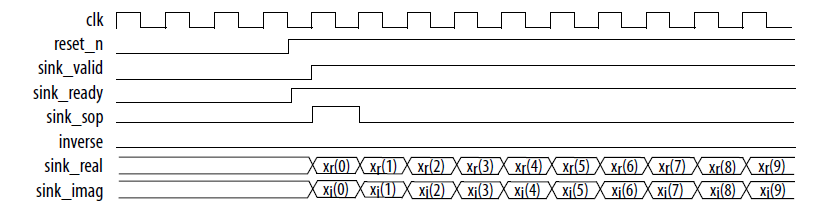 I'm attempting to simulate the FFT IIP core, using buffered burst mode. However, sink_ready never gets asserted